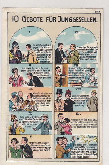 Ansichtskarten Besonderheiten 10 Gebote für Junggesellen Frauen Liebe Sprüche
