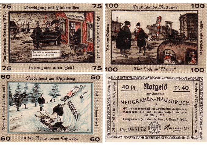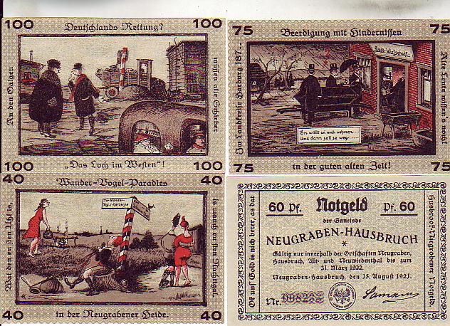 Neugraben-Hausbruch 4 Scheine Notgeld mit Bildern der Region