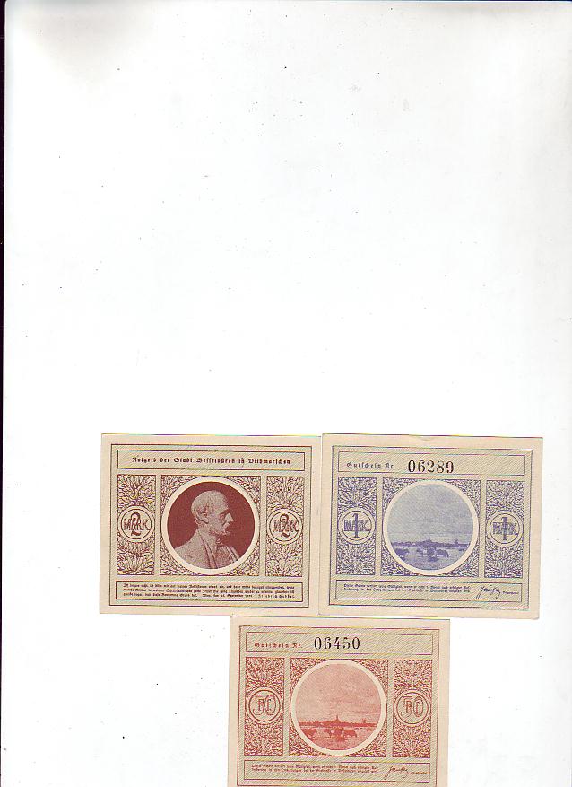 Wesselburen in Dithmarschen 3 Scheine Notgeld