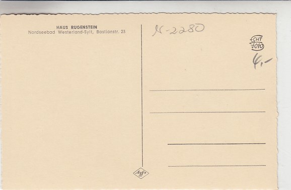 363 [2280w271] |  | Insel Sylt Westerland Haus Rugenstein ca 1955 | 4.00EUR | In den Warenkorb |