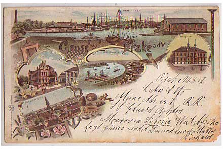 Gruss aus Brake an der Unterweser ,Litho Ansichtskarte von 1902