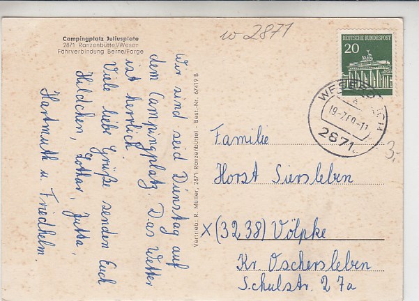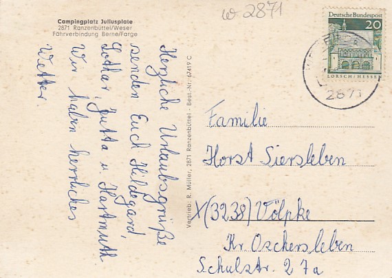 Ranzenbüttel Weser Campingplatz Zeltplatz ca 1970