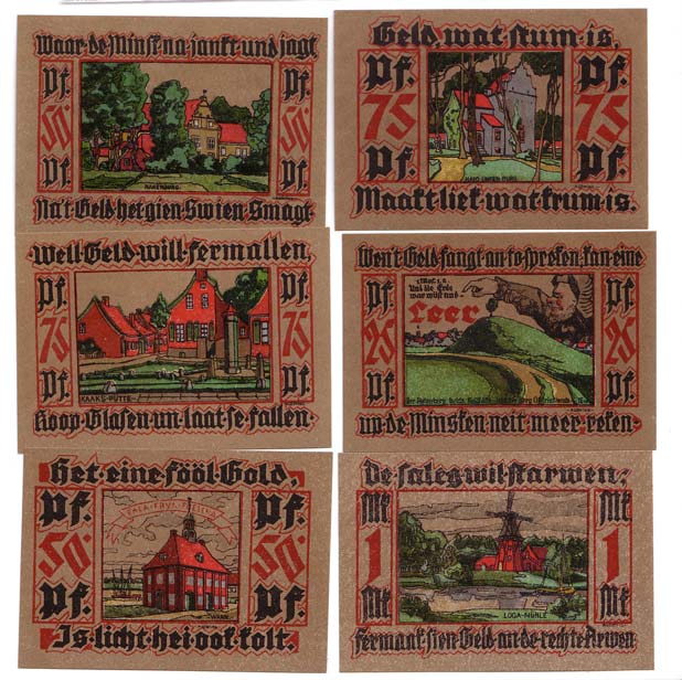 Leer Ostfriesland Notgeld 6 Scheine