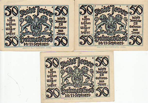 Leer Ostfriesland 3 Scheine Notgeld mit Windmühle