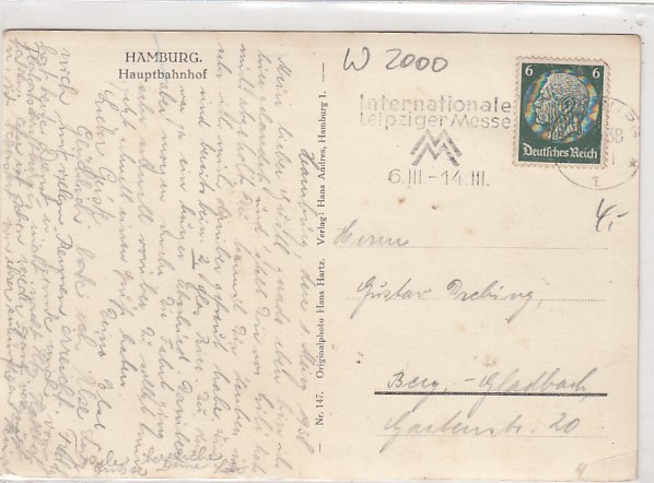 Hamburg Bahnhof Restaurant Heimstätte 1932