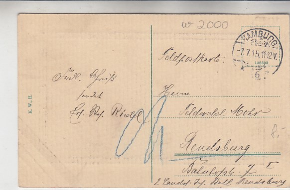 Hamburg Bahnhof Patriotosche AK Feldpost 1.WK 1915
