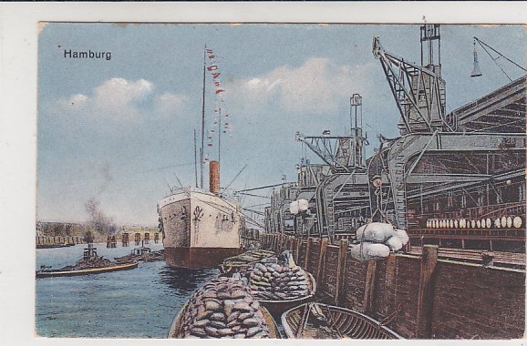 Hamburg Hafen Künstlerkarte Ozeandampfer 1917