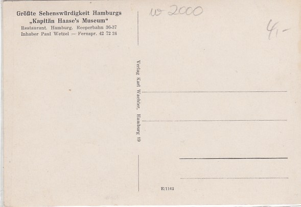 629 [2000w1217] |  | Hamburg Kapitän Haase Museum Restaurant | 4.00EUR 3.00EUR | In den Warenkorb |