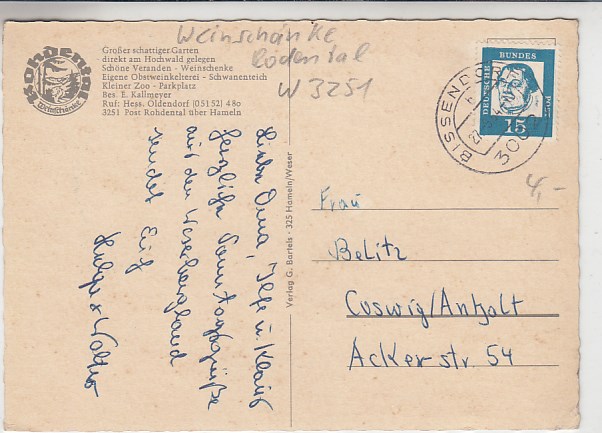 Weinschänke Rodental bei Hessische Oldendorf 1964