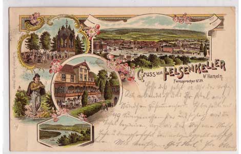 Gruss vom Felsenkeller bei Hameln Litho 1896
