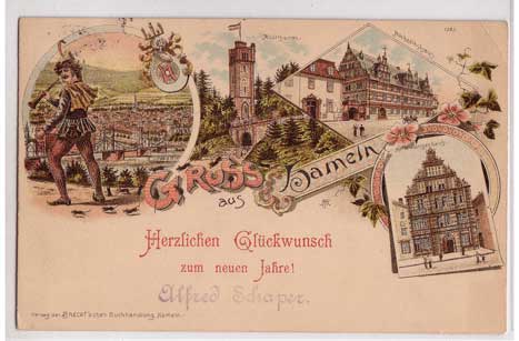 Gruss aus Hameln Glückwusch neu Jahr Litho 1899