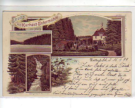 Clausthal-Zellerfeld im Harz Litho Kurhaus Untermühle 1899