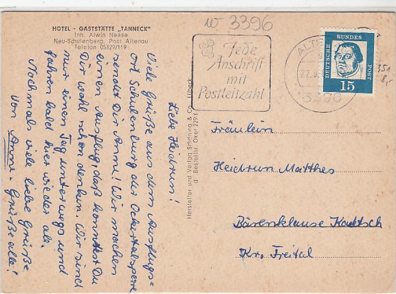 1952 [3396w99] |  | Neu-Schulenberg bei Altenau im Harz 1961 | 3.00EUR | In den Warenkorb |