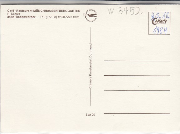 382 [3452w5] |  | Cafe Offermanns Bodenwerder Weser ca 1965 | 4.00EUR | In den Warenkorb |