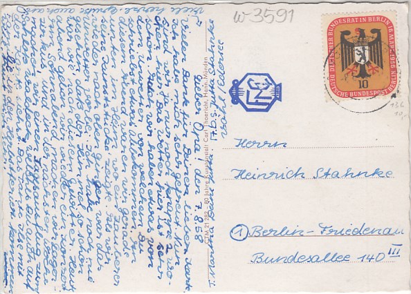 Edersee Sperrmauer Waldeck 1958 Landpoststempel Scheid Korbach