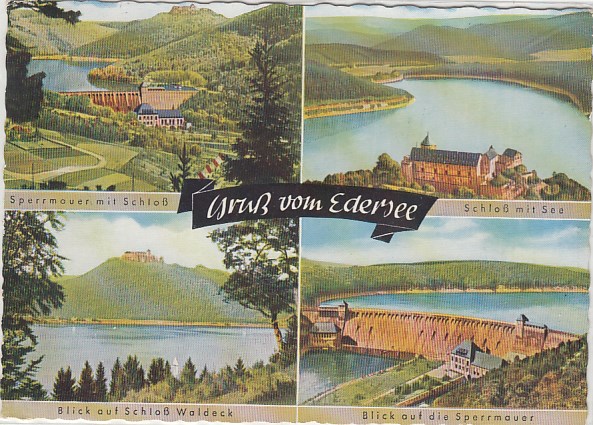 Edersee Sperrmauer Waldeck Landpoststempel Scheid über Korbach