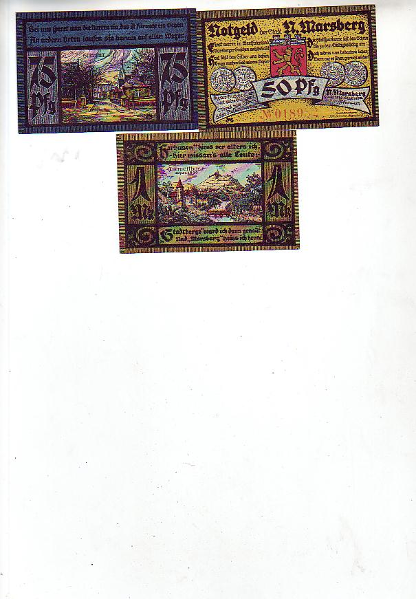 Marsberg 3 Scheine Notgeld mit Bilder der Stadt