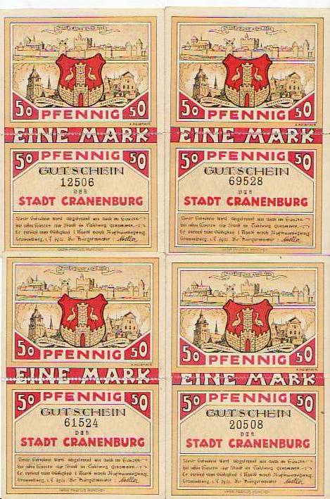 Cranenburg 4 Scheine Notgeld