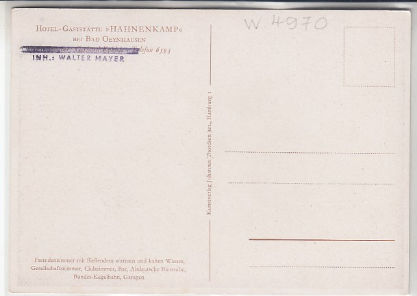 109 [4970w168] |  | Bad Oeynhausen Hotel Gaststätte Hahnenkamp ca 1940 | 5.00EUR | In den Warenkorb |