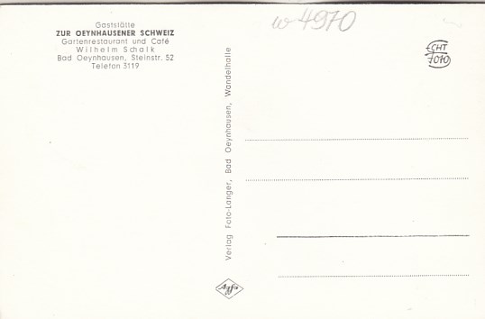 165 [4970w169] |  | Bad Oeynhausen Restaurant Zur Bad Oeynhausener Schweiz ca 1955 | 4.00EUR | In den Warenkorb |