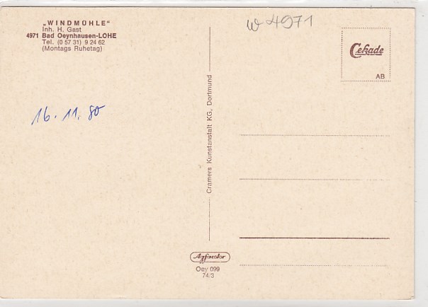 156 [4971w2] |  | Bad Oeynhausen Lohe Windmühle 1976 | 3.00EUR | In den Warenkorb |