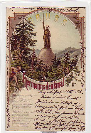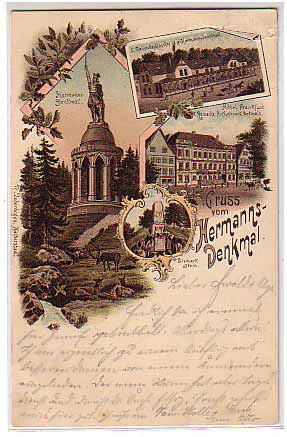 Hermannsdenkmal bei Leopoldstal, Detmold , Litho 1902