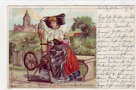 Porta Westfalica Spinnrad, Trachten Litho 1906