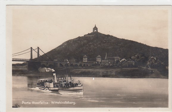 Porta Westfalica Kaiser Wilhelm-Denkmal Motorschiff auf der Weser 1954