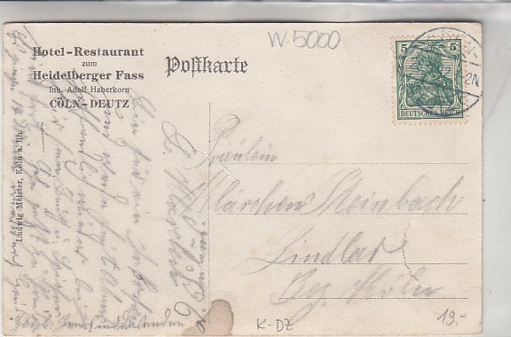 Köln am Rhein Deutz Hotel-Restaurant zum Heidelberger Fass 1912
