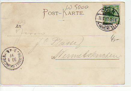 363 [5000w383] |  | Köln am Rhein Postamt,Raddampfer Litho 1898 | 12.00EUR | In den Warenkorb |