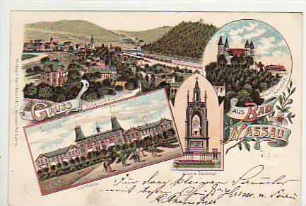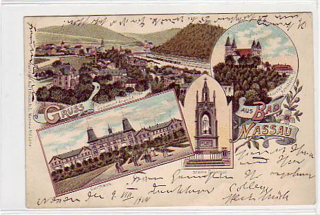 Bad Nassau an der Lahn Litho mit Kloster Arnstein 1900