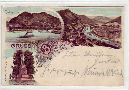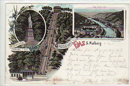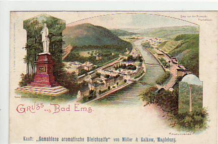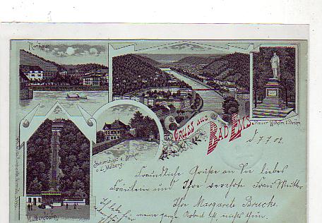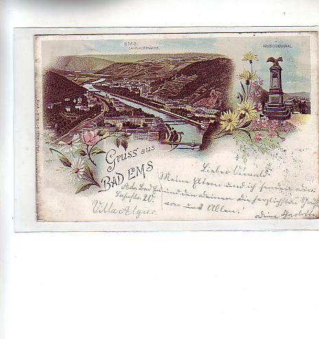 Bad Ems Litho mit Kriegerdenkmal 1898