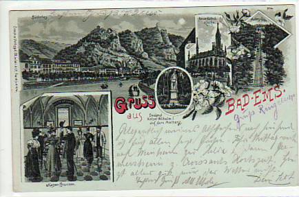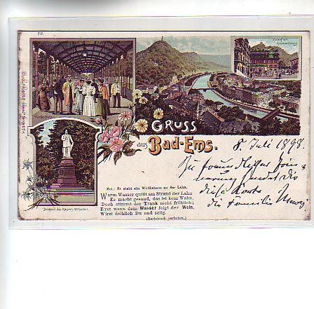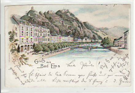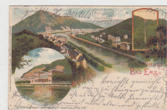 Bad Ems Litho vom Schweizerhaus ca 1900