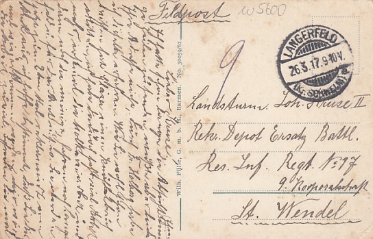 39 [5600w543] |  | Barmen-Elberfeld Wuppertal Feldpoststempel Langerfeld 1917 | 3.00EUR | In den Warenkorb |