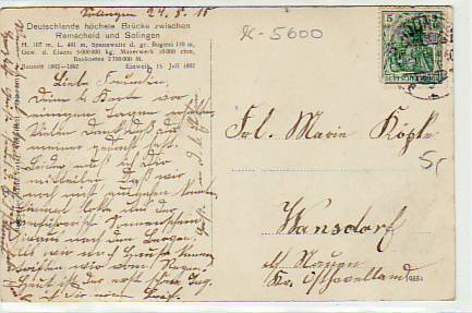 Kaiser Wilhelm Brücke bei Müngsten 1913