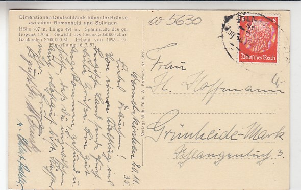 Kaiser Wilhelm-Eisenbahn-Brücke Remscheid-Solingen 1930