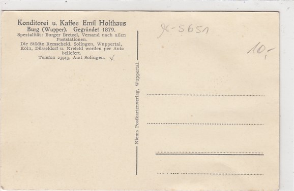 Konditorei Emil Holthaus Burg an der Wupper bei Solingen ca 1930