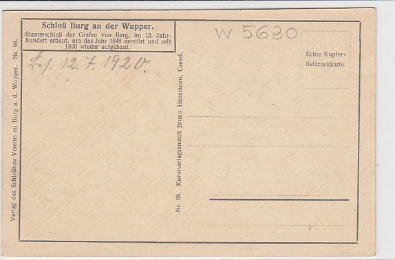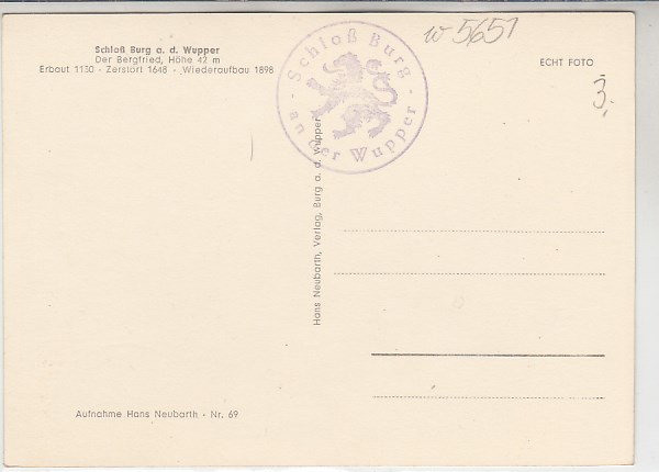 Solingen Schloss Burg an der Wupper Steindruck AK ca 1920