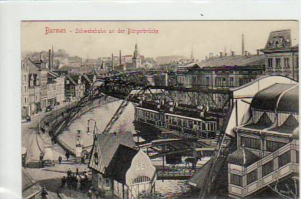 Wuppertal Barmen Schwebebahn an der Bürgerbrücke ca 1915