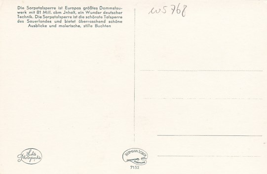 Sorpetalsperre im Sauerland Langscheid 1953