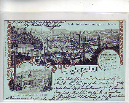 Wuppertal Barmen-Elberfeld Litho von 1901
