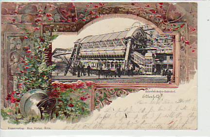 Wuppertal Barmen-Elberfeld Schwebebahn-Bahnhof Litho 1900