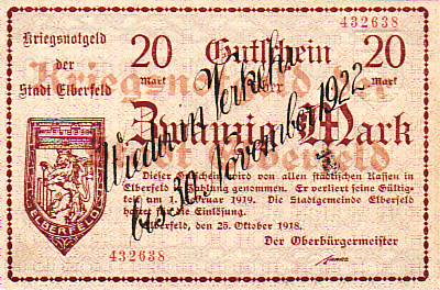 Wuppertal Notgeld 20 Mark 1918