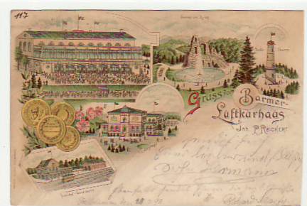 Wuppertal Stadtteil Barmen Luftkurhaus Litho Ansichtskarte von 1898
