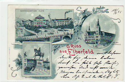 Wuppertal Stadtteil Barmen Mondschein Litho Ansichtskarte von 1898