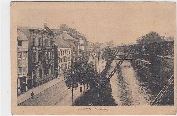Wuppertal Stadtteil Barmen Neuer Weg mit Schwebebahn 1918