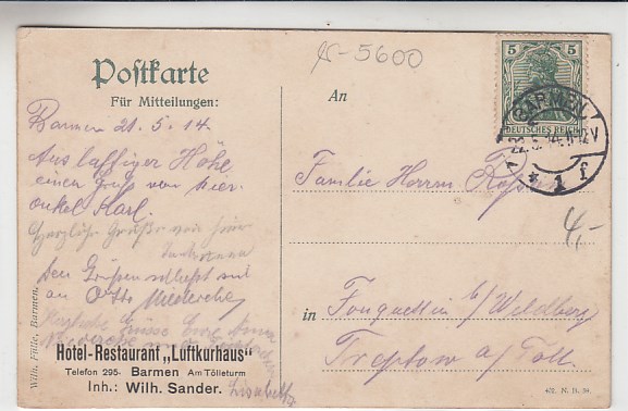 Wuppertal Stadtteil Barmen Tölleturm 1914