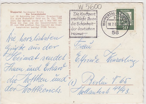Wuppertal Schwebebahn Barmen-Elberfeld 1958