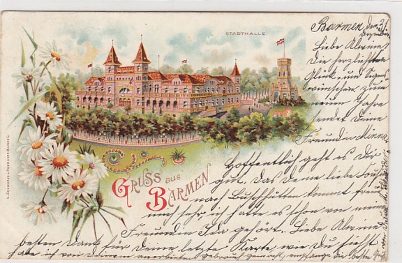 Wuppertal Stadtteil Barmen Stadthalle Litho Ansichtskarte von 1901