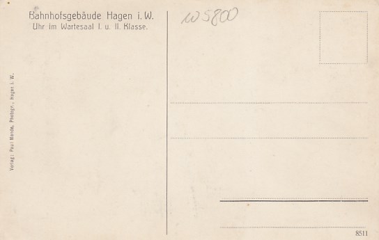 Hagen in Westfalen Bahnhofsgebäude Uhr im Wartesaal ca 1910